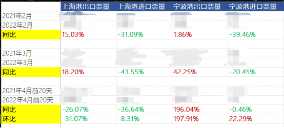 根据门徒娱乐的产品后台数据统计,上海港的出口量自4月开始直线下滑,与3月相比下降约31%,基本可以佐证行业媒体披露的货量减少30%左右。而这些无法从上海港出口的货物,则大多外溢到了隔壁的宁波港。今年4月,宁波港出口量相较上月增长接近200%,直接翻倍。