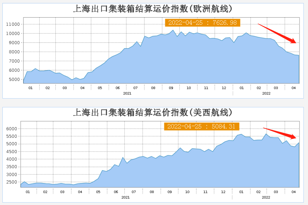 受全球疫情、战争冲突、港口拥堵等因素影响,来自中国的货运预订量大幅下降,集装箱即期运费面临越来越大的压力。
