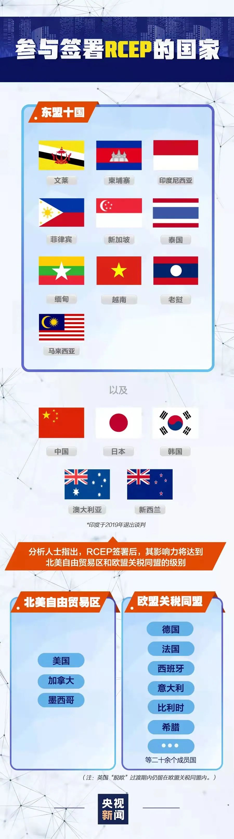 2020年11月15日,谈判历时8年之久的区域全面经济伙伴关系(Regional Comprehensive Economic Partnership,简称RCEP)获得正式签署。