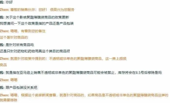 也有卖家开case咨询了客服,再次确认了“禁塑令”的含义:政策针对的是作为商品销售的不透明或单色的聚酯薄膜袋,而非使用薄膜袋包装的产品。