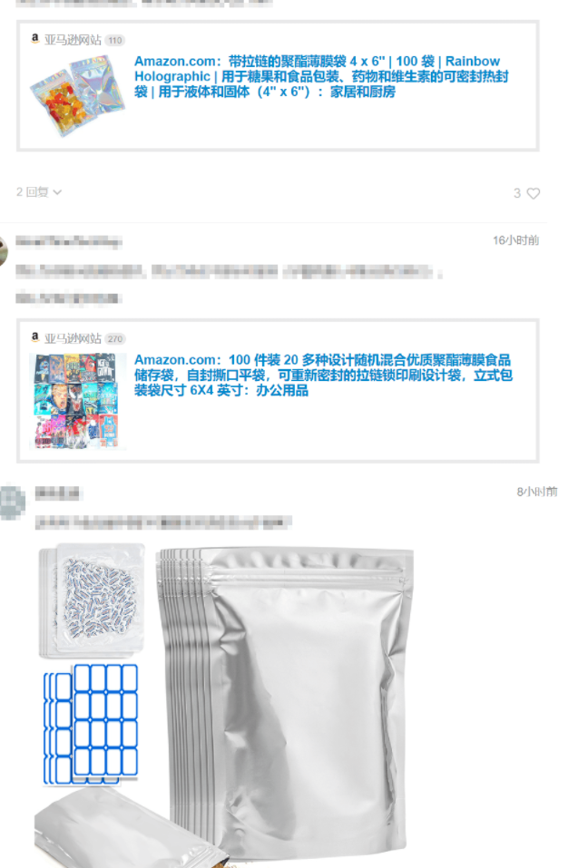 根据亚马逊提供的药物及管制物质类产品的政策,明确规定商品不得用于制造、制备或使用管制物质,其中就包括不透明或非单色的聚酯薄膜袋。