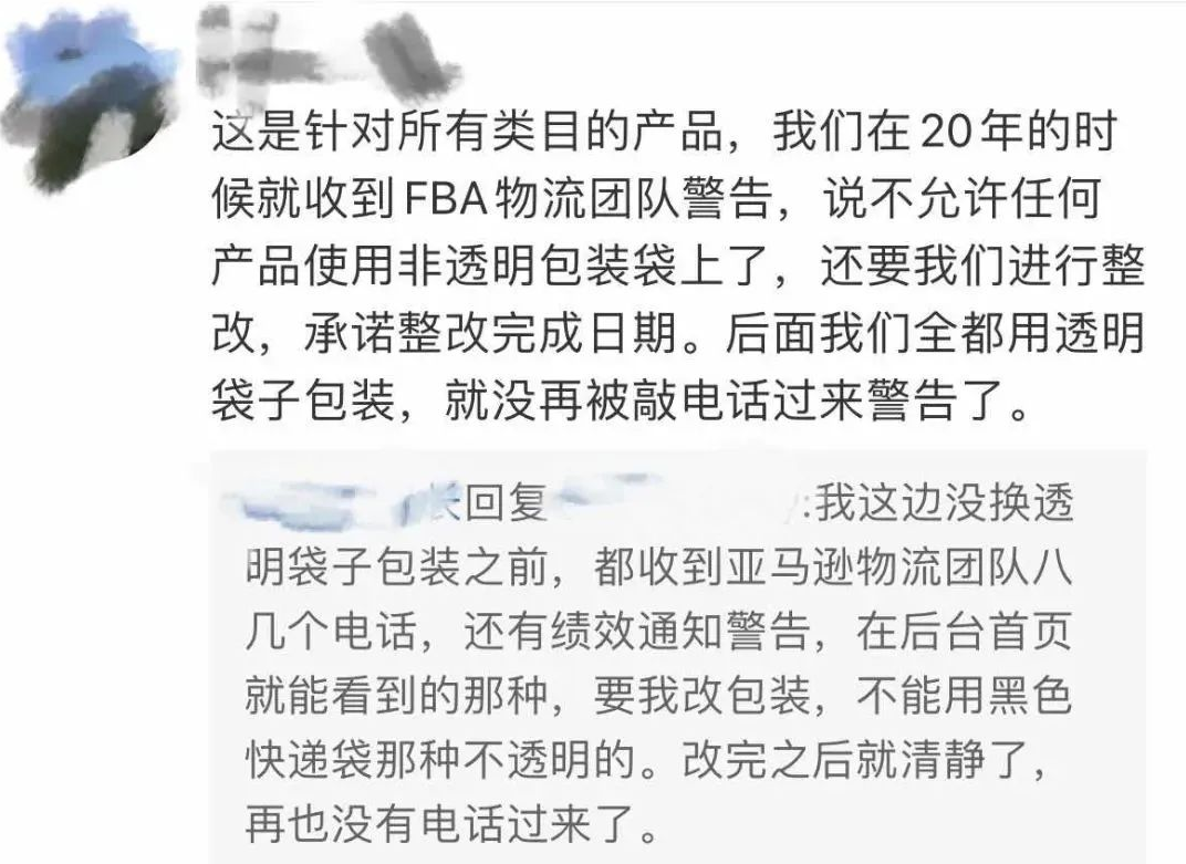 就在上周,一位卖家就因为一款商品没使用透明包装袋,收到了亚马逊的警告。