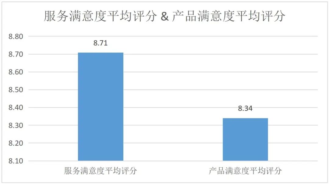 而门徒娱乐在服务满意度和产品满意度方面相差不大,服务满意度(8.71)和产品满意度(8.34),这两项的总体反馈较好,对服务的满意度更胜一筹。