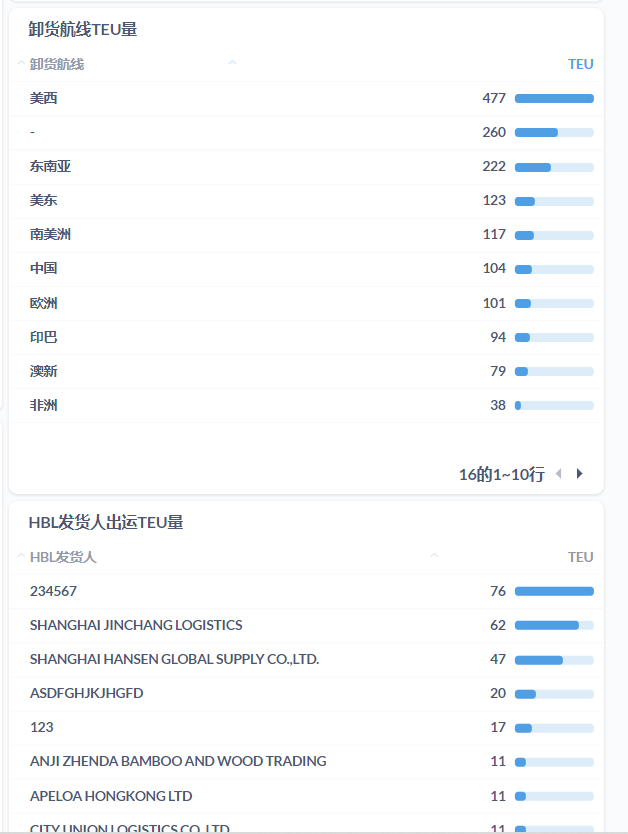 部分新版BI界面剧透:不同航线&发货人货量统计