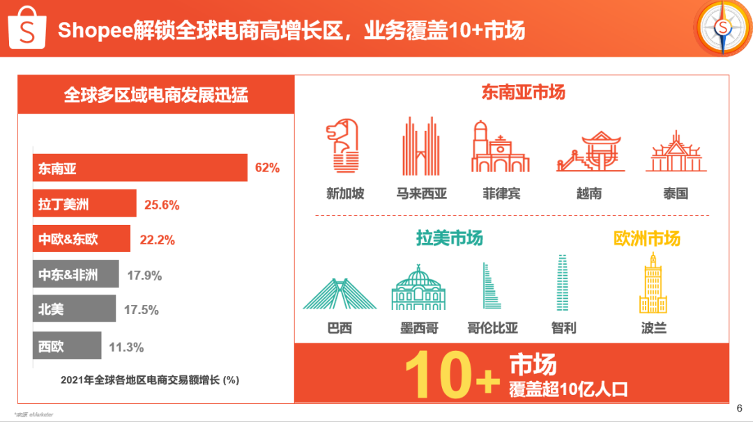 林经理补充道,除了东南亚外,还有很多“蓝海”等待开发:拉美市场增速毫不逊色于东南亚,是Shopee聚焦的又一大战场;同时,欧洲市场也是Shopee发力的战略目标。