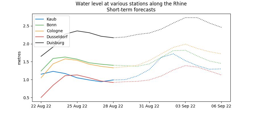 根据WSV预测,本周二莱茵河关键航点考布( Kaub)水位将达到100cm左右,然后将会继续一路下跌,可能会跌破80厘米。而船只需要大约 1.5 米水位才能满载航行。