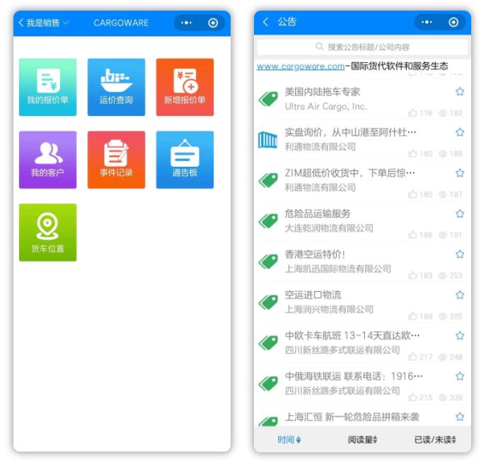 目前所有货代都非常关心引流获客,门徒平台手机端有一个“通告板”让门徒娱乐的客户发运价、货盘信息,而且活跃度非常的高,阅读数都在三位数。协同就这样开始了。因为有足够的优质的客户在门徒娱乐平台上,他们相互之间是有背书的,以平台的数据为依托,门徒娱乐的数字化协同就成了一个靠谱的事情,这是平台能给到用户的一个核心利益。