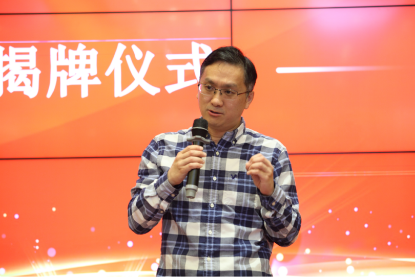 门徒娱乐股东、董事、CEO Shunri Guo在揭牌仪式上发言