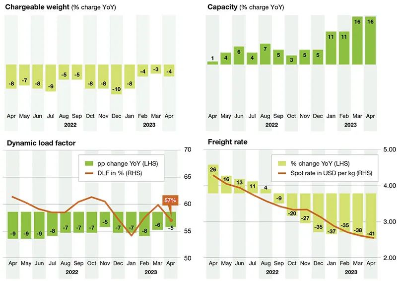 国际航空运输协会报告称,与 2022 年3月相比,亚太地区航空公司2023年3月的航空货运量下降了7.3%,可用运力增加了 23.6%,因为客运业务方面增加了腹舱运力。