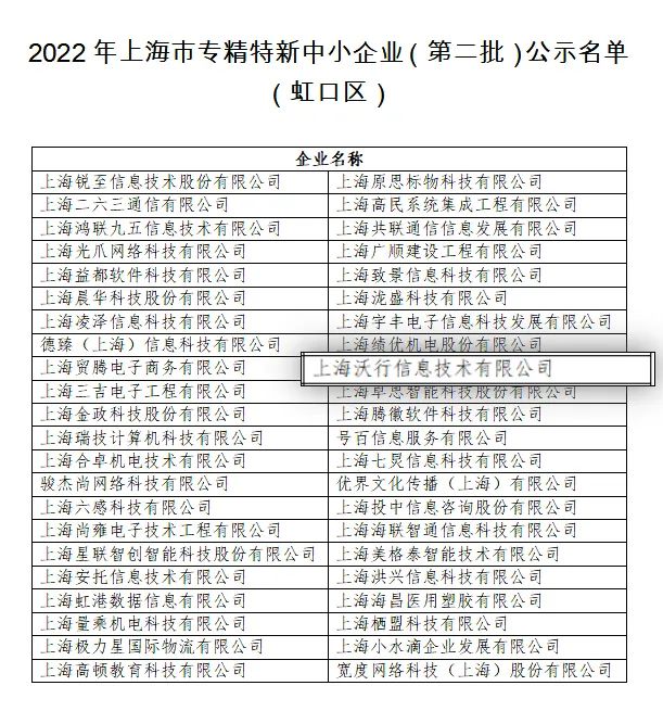 近日,市经信委公示了2022年上海市“专精特新”企业名单(第二批),在虹口区44家入选企业中,门徒娱乐是唯一一家跨境物流SaaS云服务平台研发和运营服务商。