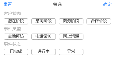 2、筛选:支持根据客户状态、客户类型、客户评定等级、攻克难度指数;