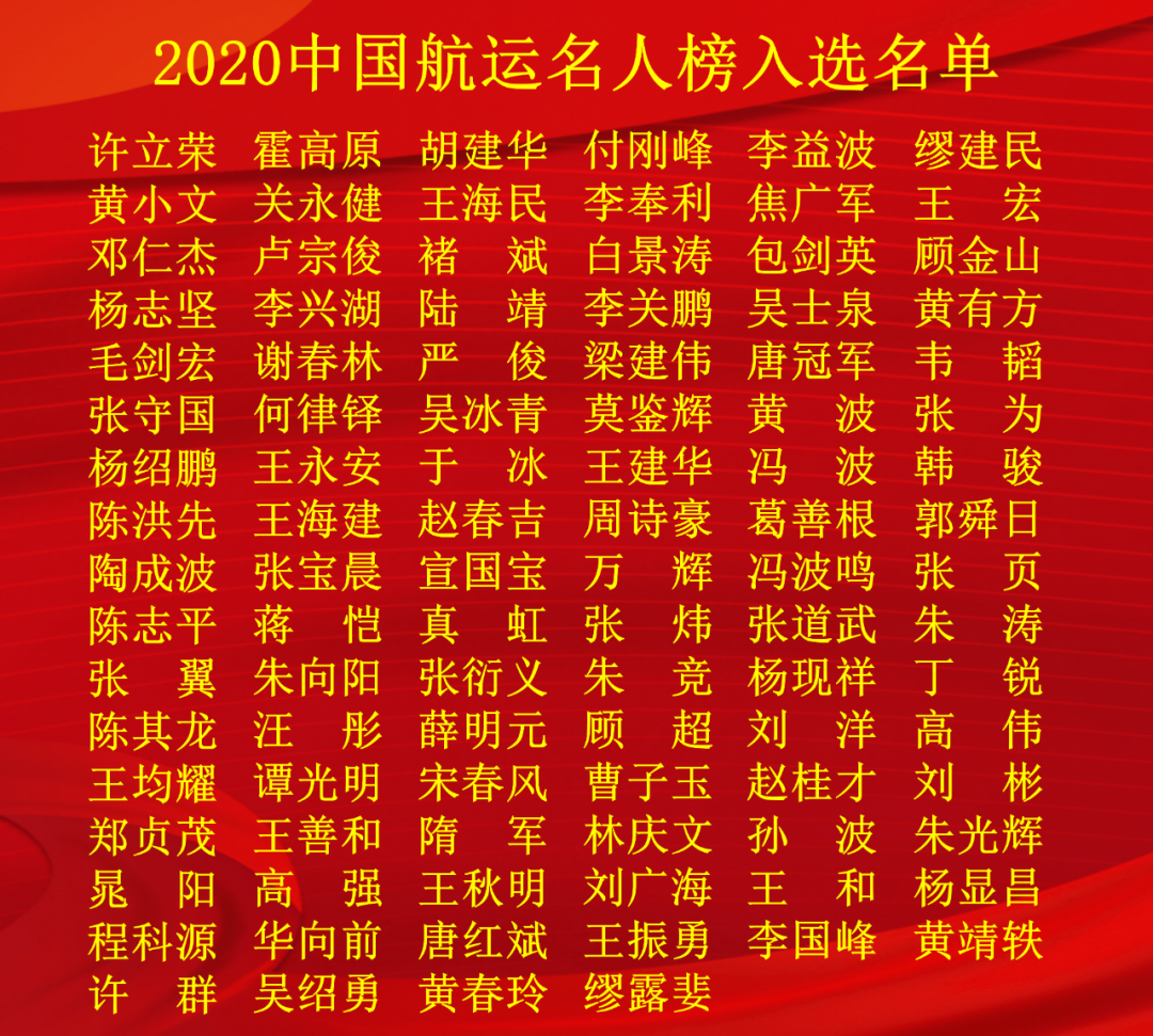 “中国航运名人榜”由中国航务周刊发起,旨在彰显行业领军人物优秀品质、推动中国航运业的发展。经从业者共同推选、投票、行业专家审定,每年评选出100位对行业产生积极影响、做出突出贡献的年度人物。