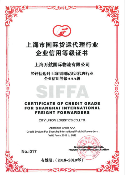 2013-2018年上海市国际货运代理行业企业信用等级AAA级