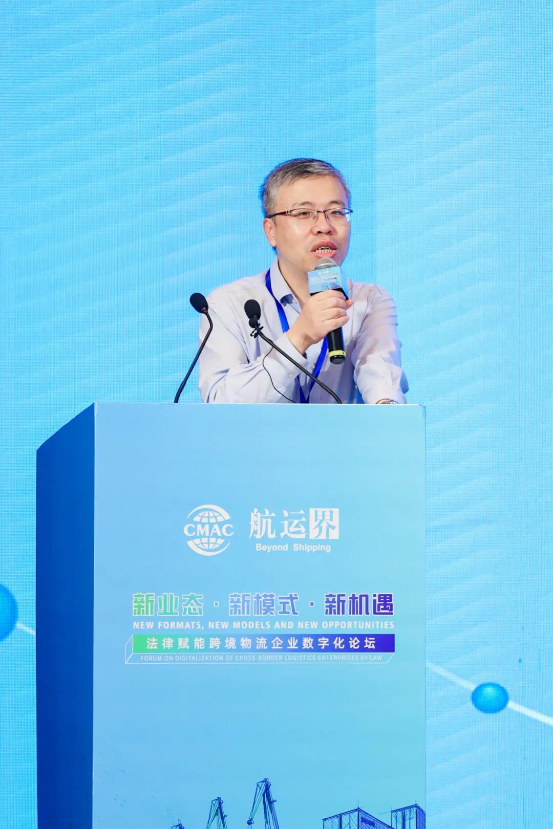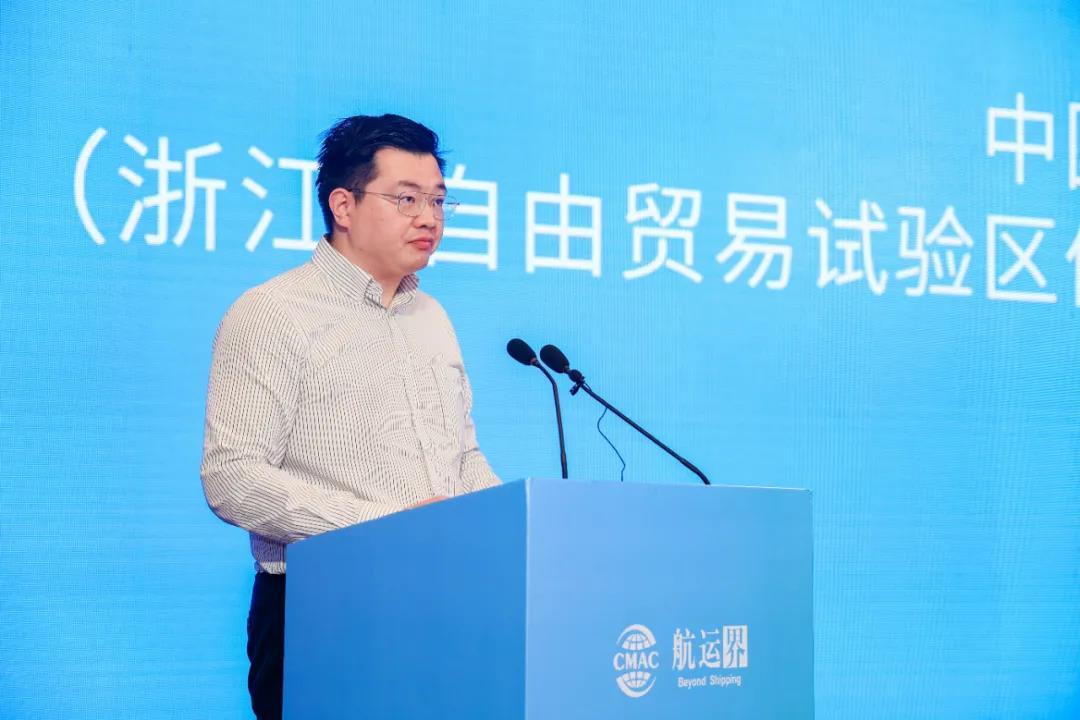 中国海事仲裁委员会(浙江)自由贸易试验区仲裁中心黄晨亮副秘书长为论坛致辞,他表示宁波市的港航服务信息化水平在国内沿海港口中走在前列,但仍存在境外诉讼难等问题。对此黄晨亮副秘书长表示中国海仲将尝试整合专家资源,帮助跨境物流企业防控国内外法律风险,促进港航服务业提质增效,并希望通过本次论坛汇集的成果,进一步为港航服务业在法律赋能下做好服务保障。