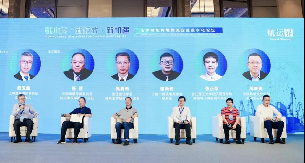 2021年6月10日,由中国海事仲裁委员会、中国国际货运代理协会、宁波市人民政府口岸办公室、鄞州区人民政府联合主办,中国海事仲裁委员会(浙江)自由贸易试验区仲裁中心与航运界网承办的“新业态·新模式·新机遇—— 法律赋能跨境物流企业数字化”论坛在宁波顺利召开。