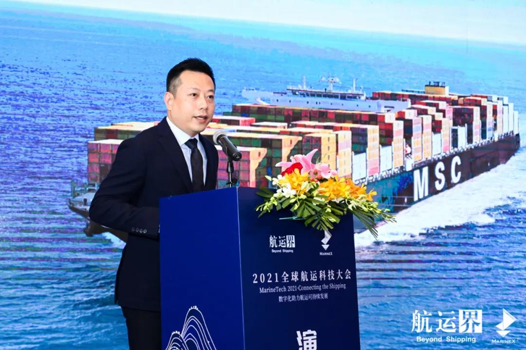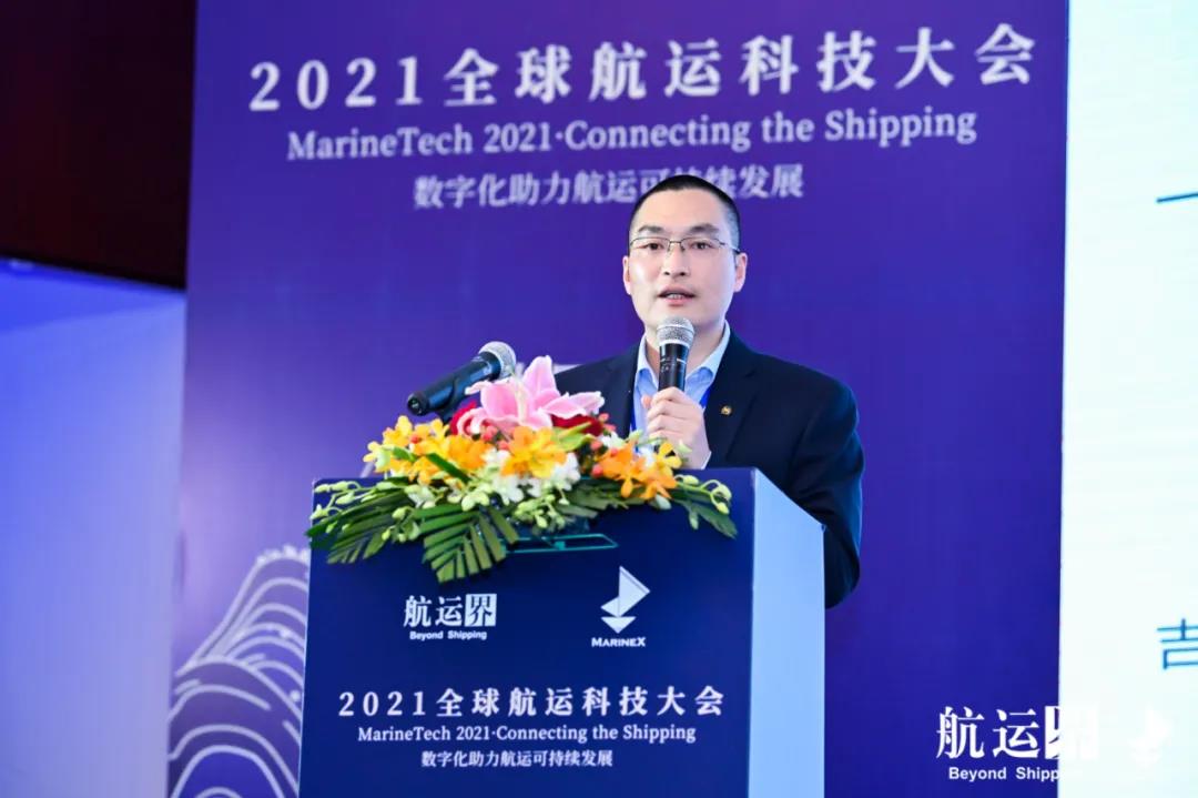 E-PORTS联合创始人兼副总裁官勇,发表题为《让船舶在网上航行-抓住数字化航运新趋势》的主旨演讲。