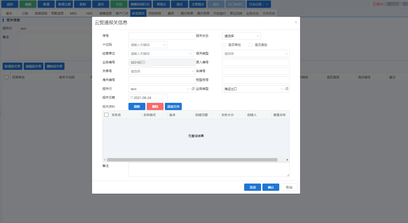 报关单填写界面