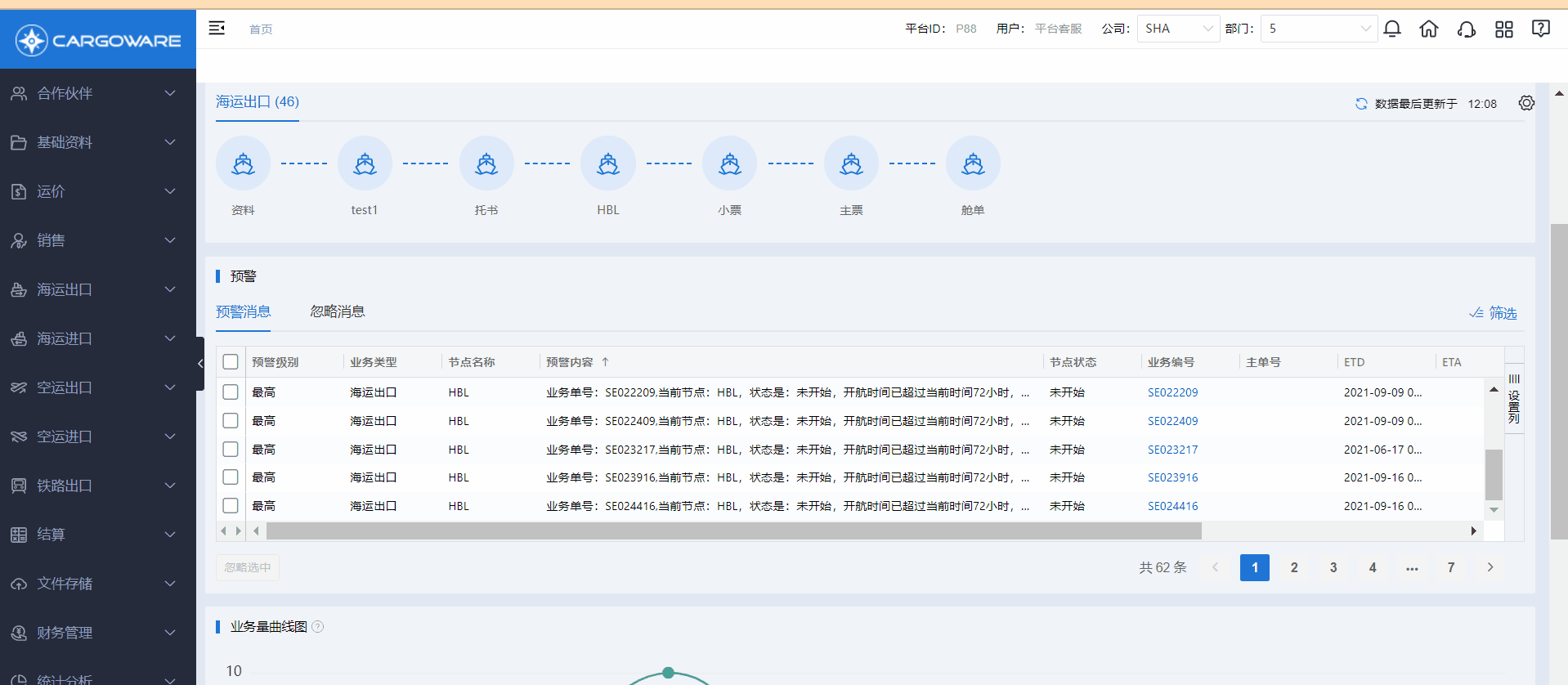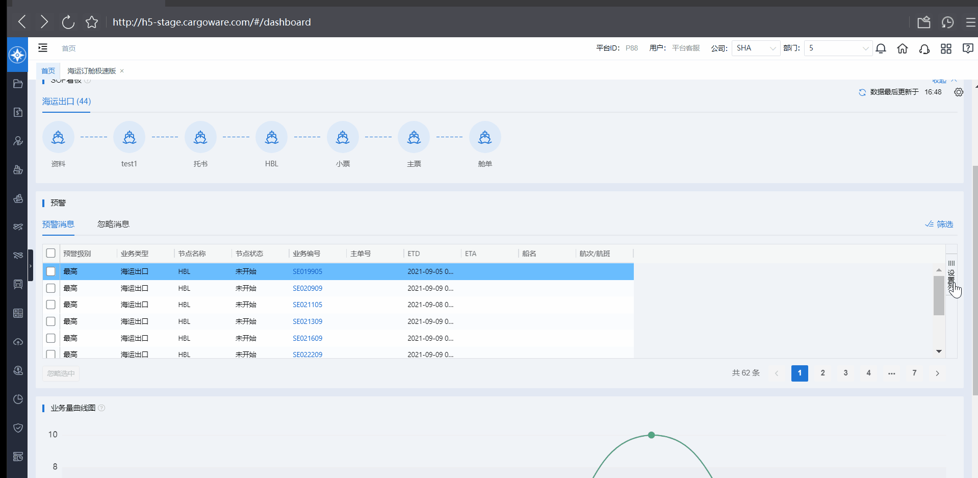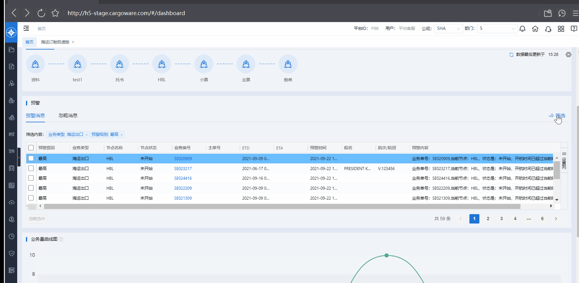 此次升级版SOP模块,将实力超凡的预警能力推向新高度。在第一版SOP基础上增设“预警消息”板块,显示业务编号、主单号、节点状态、预警内容和级别等,更直观、更细分、更灵活!