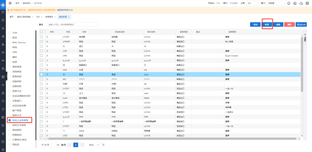 通过⌈基础资料-基础数据⌋中增加\修改铁路出口和铁路进口的自定义业务类型。