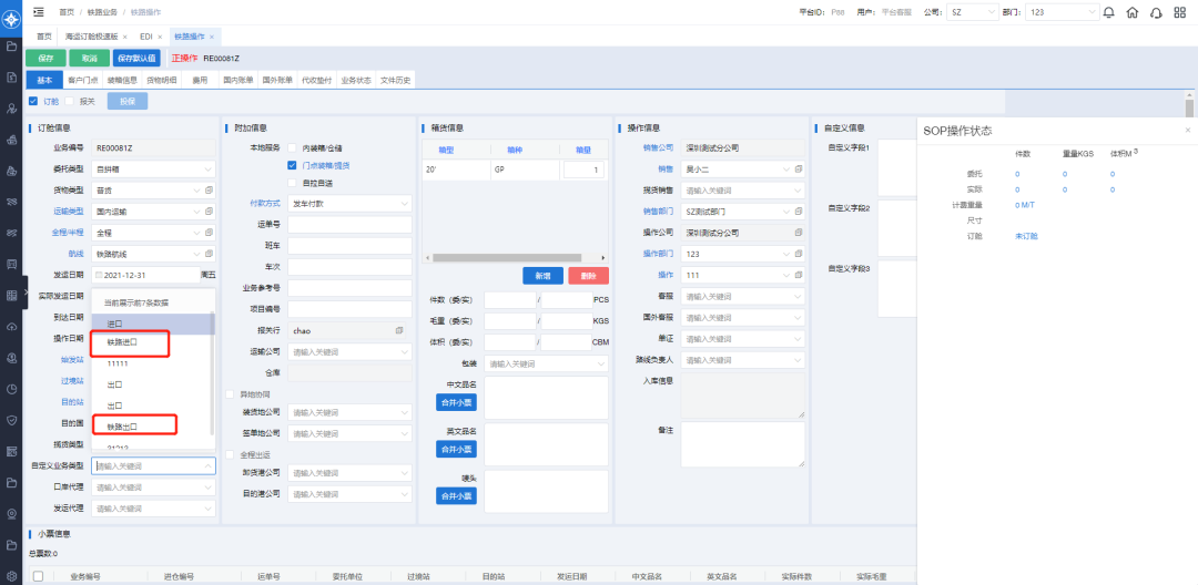 现在,铁路出口和铁路进口一同整合到⌈铁路操作⌋模块中,用户可自行选择业务类型,完成进出口操作。